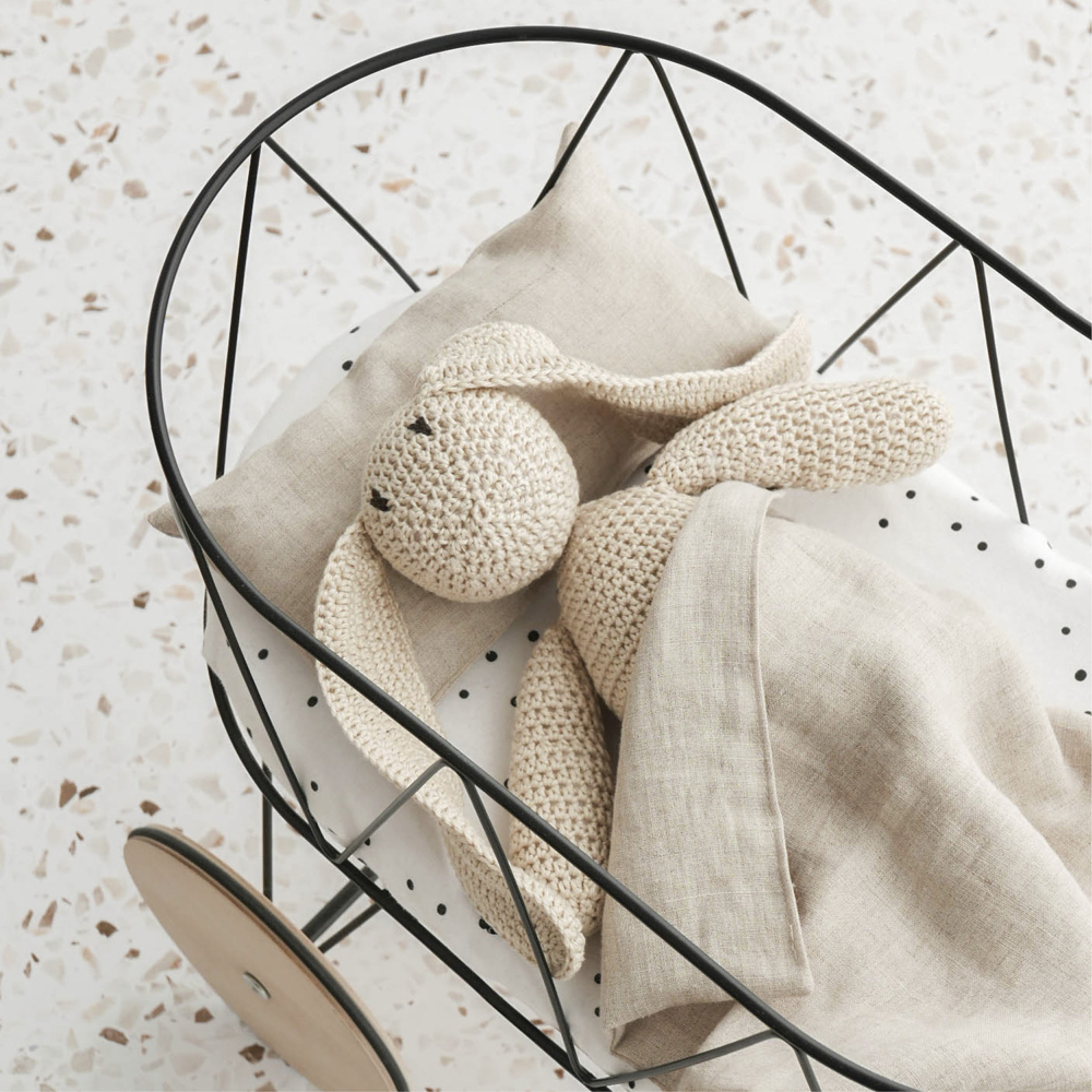 Featuring our linen bedding and cashmere blanket for ultimate comfort, paired with the black walker—ready to support those exciting first steps.