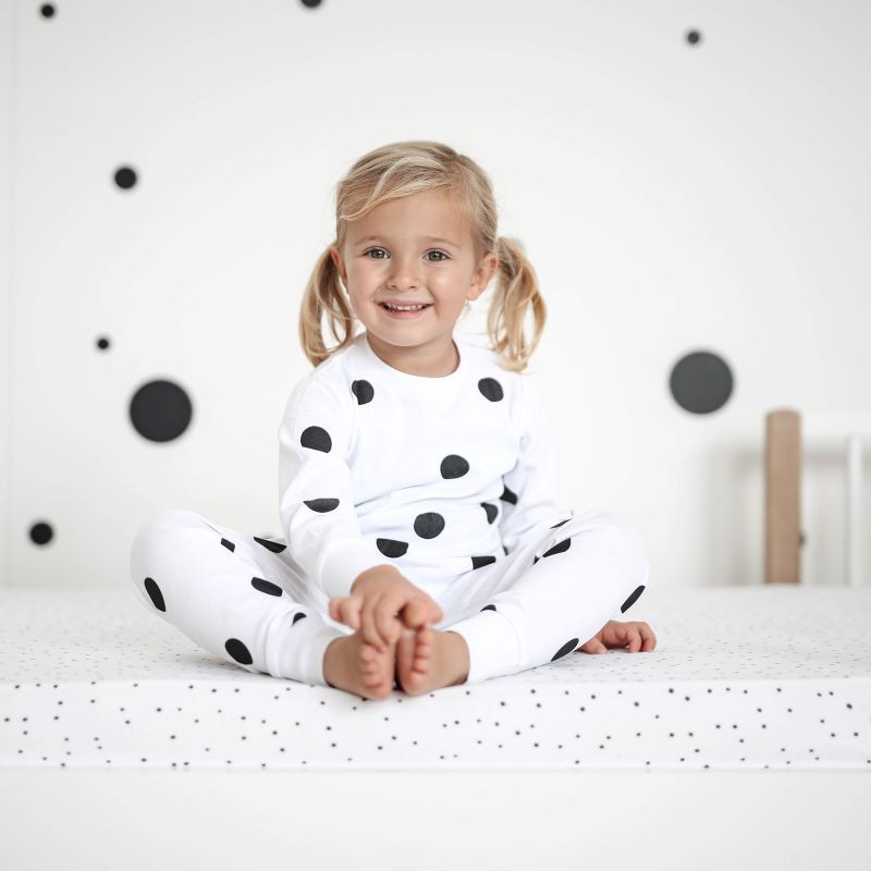 Soft cotton pajamas with cute polka dots, perfect for sweet dreams and a cozy, worry-free night. Sleep tight and don't let the bedbugs bite!