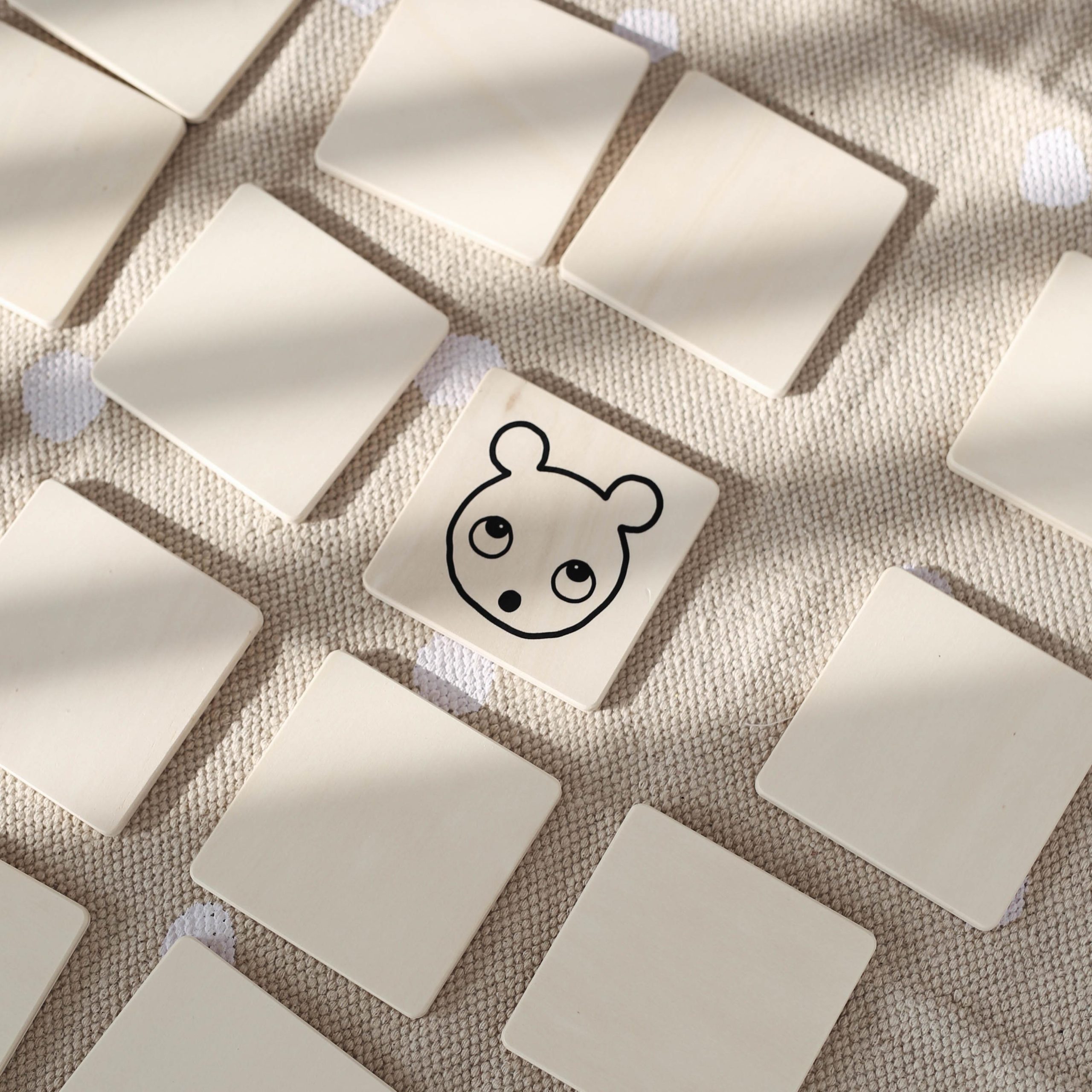 What you see is what you get. Our Memory Game tiles are of high quality wood and not treated with any substances. The sack for the tiles is made of pure cotton.