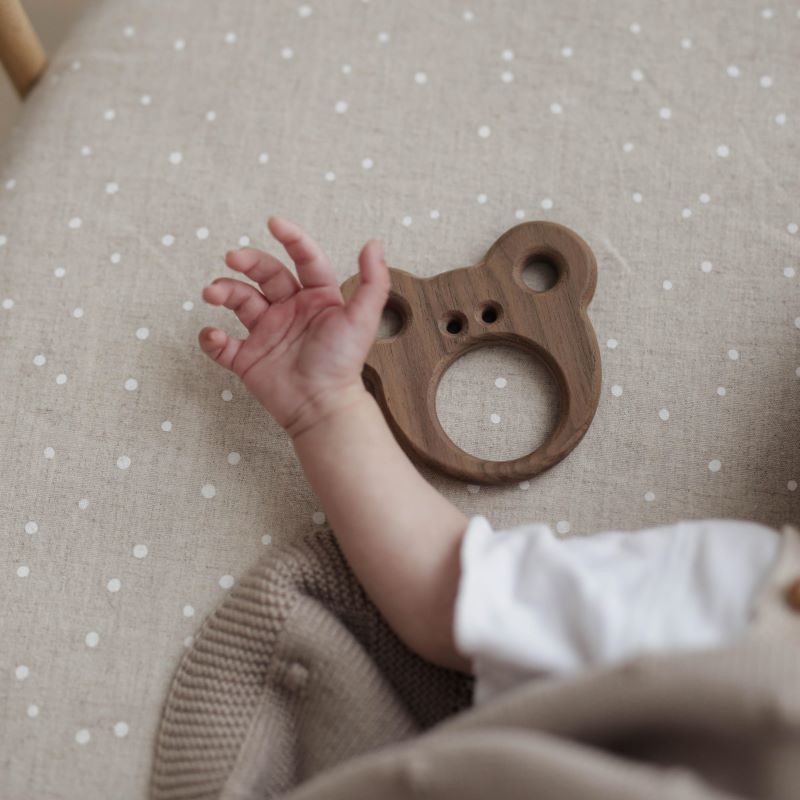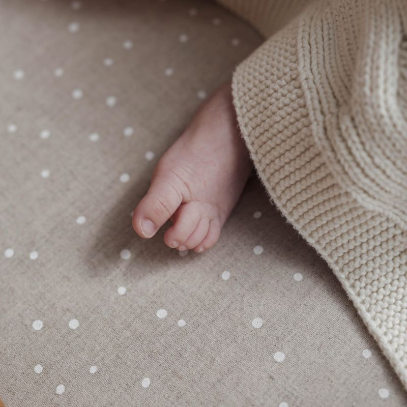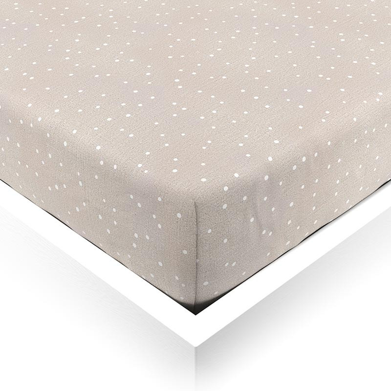 Cotton-linen polka dot fitted sheet combines natural softness with effortless style. Added elastane ensures a perfect fit and helps the sheet keep its shape over time. Breathable, soft, and designed for everyday comfort.