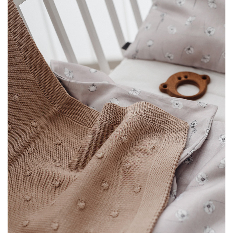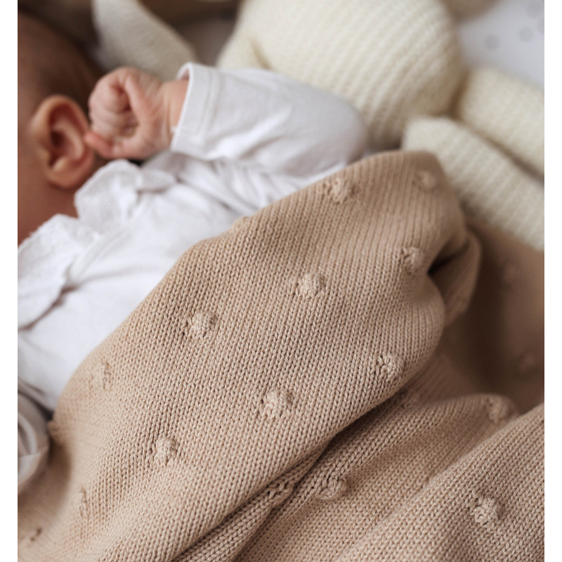 Ovijte svojega dojenčka v udobje in slog z mehko bombažno pleteno odejico, ki je čudovito okrašena z nežnimi “popcorn” detajli v odtenku mocha. Popolna za uporabo v zibelki, vozičku ali avtosedežu, prinaša toplino in prijetno udobje kamorkoli greste. Njena teksturirana zasnova nudi tudi pomirjujočo senzorično izkušnjo za drobne roke, kar jo naredi prijetnega spremljevalca za vašega dojenčka, še posebej v hladnejših mesecih.