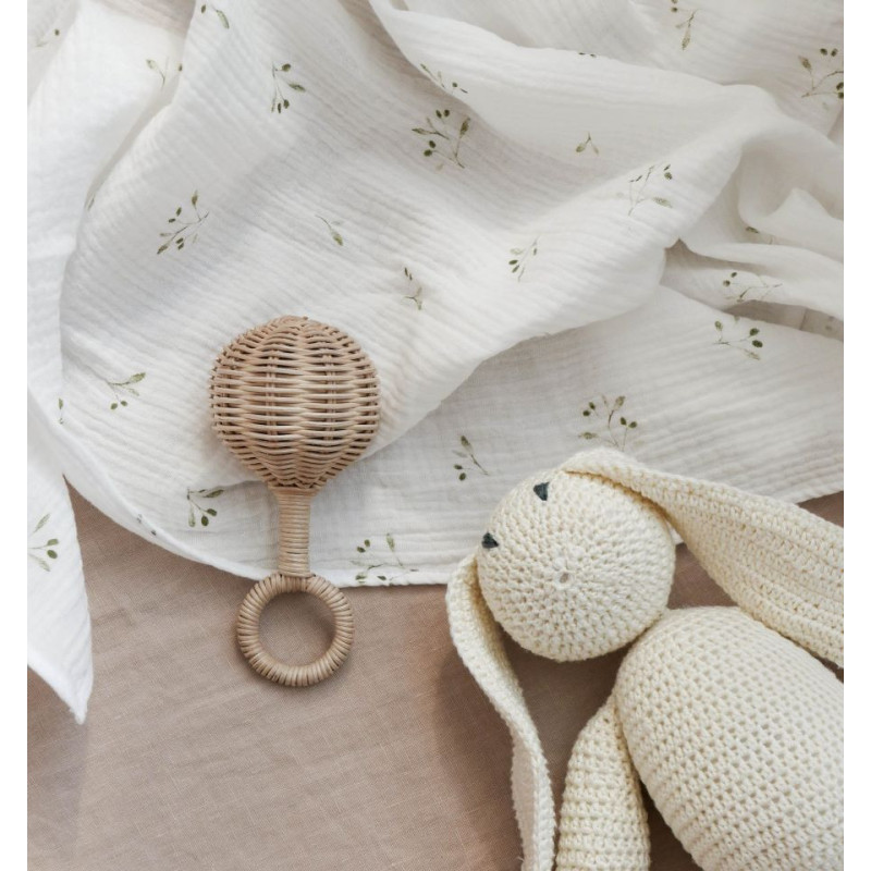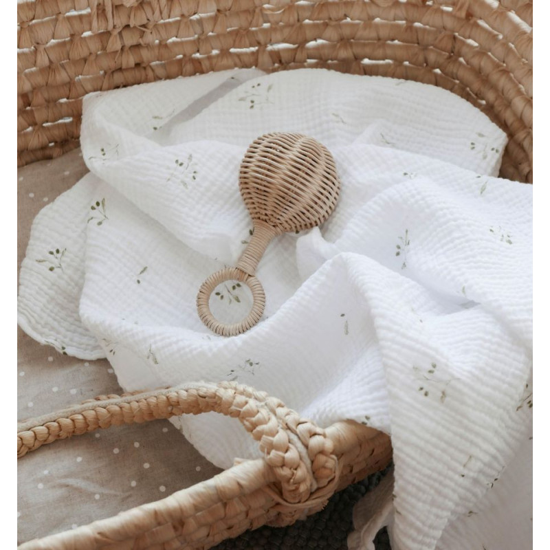 Dvoslojna otroška odejica iz mehkega muslina s potiskom oljk za vsakega malčka.