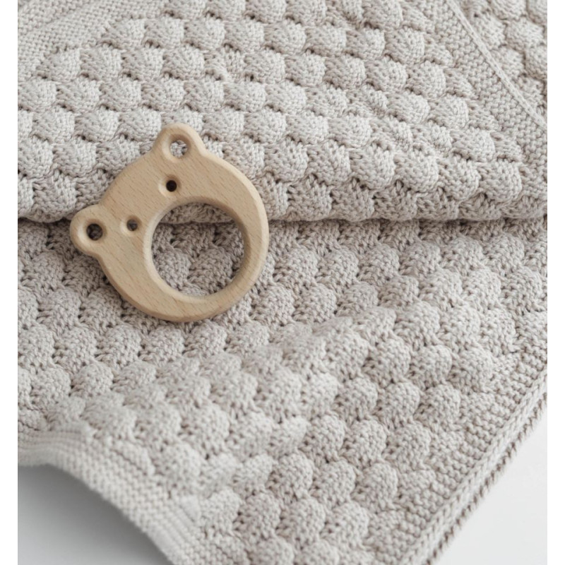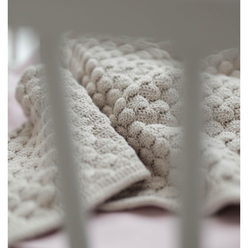 Mehka bombažna odejica z nežno teksturo, prijetno za dojenčkove drobne roke in hkrati stilska izbira za vsak prostor.