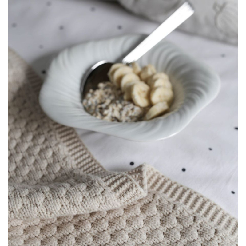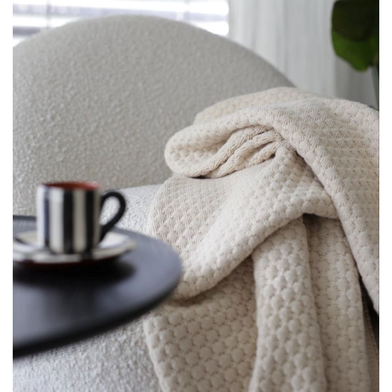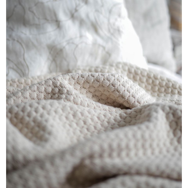 Z igrivo teksturo in prijetno mehkim občutkom na dotik v prostor vnese toplino ter funkcionalnost. Zračna bombažna mešanica prijetno greje, ne da bi zadrževala odvečno toploto, zato je popolna izbira za vse letne čase – za sproščene večere na kavču, kot dodatna plast na postelji ali za umirjene trenutke ob knjigi.