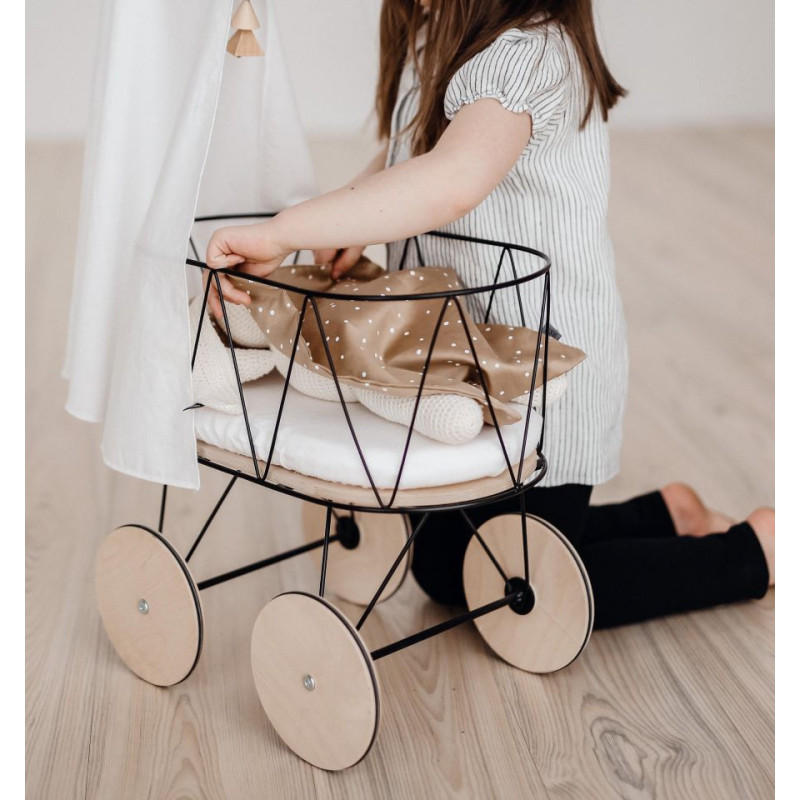 Vstopite v svet nežne igre in sladkih sanj z našim očarljivim setom Dolly Cot. Oblikovano z ljubeznijo in kančkom magije, je to popolno okolje, kjer lahko malčki skrbijo za svoje lutke, jih pokrijejo in jih zazibajo v spanje pod prijetnim baldahinom. Brezčasen kos, ki prinaša toplino, domišljijo in čar v vsako igralnico ali vrtec.