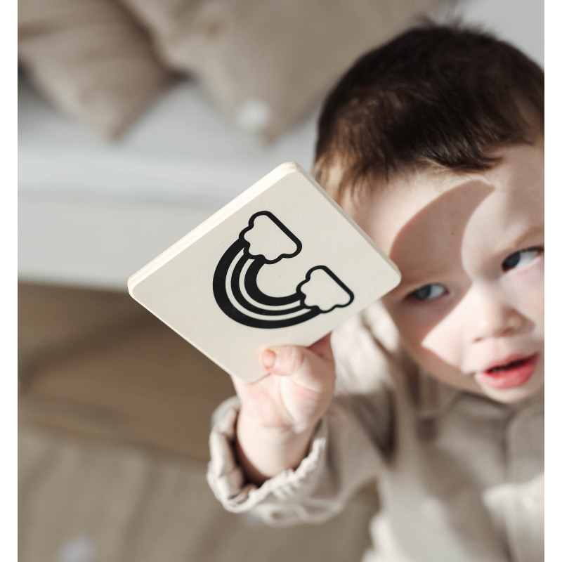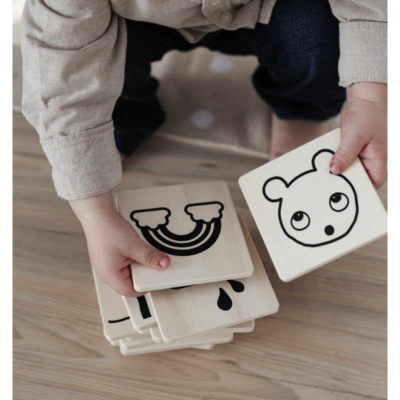 Vsebuje 8 ljubkih parov na velikih, enostavnih lesenih ploščicah iz čistega, neobdelanega lesa, ki zagotavlja varno, naravno in zabavno igro.