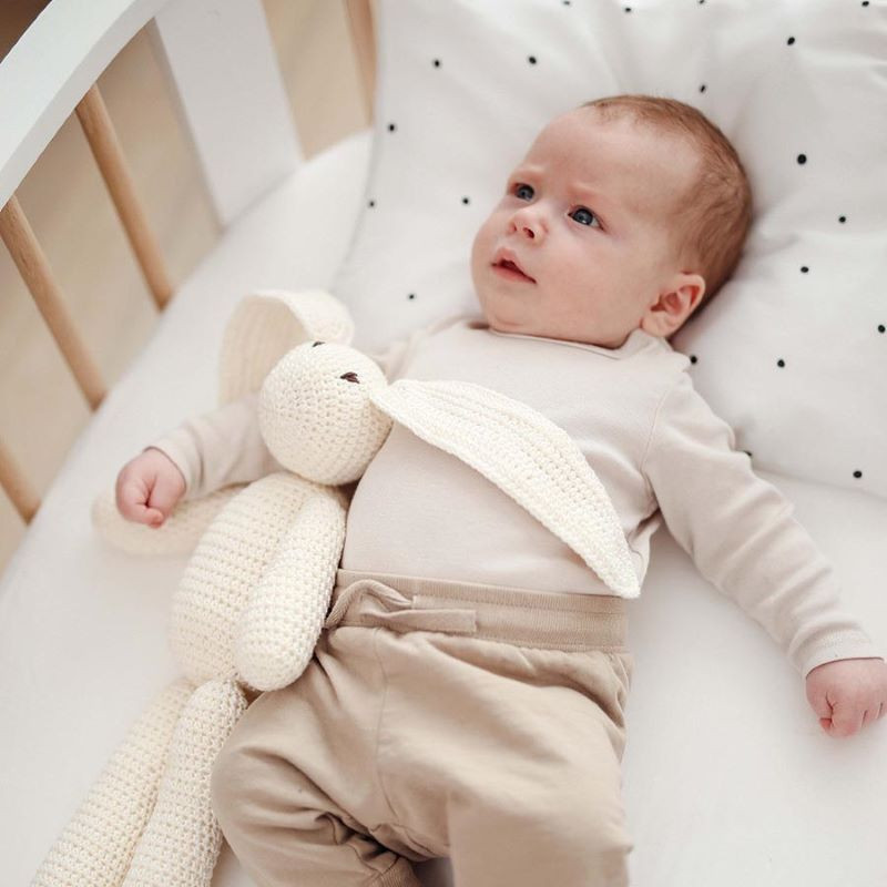 Kvačkani bombažni zajček v krem barvi
