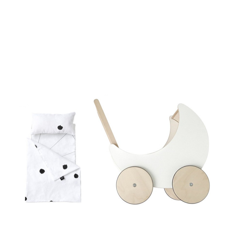 Komplet posteljnine je zasnovan posebej za naš voziček, saj si tudi punčke zaslužijo mehko in udobno posteljnino. Izbirate lahko med petimi različnimi vzorci.