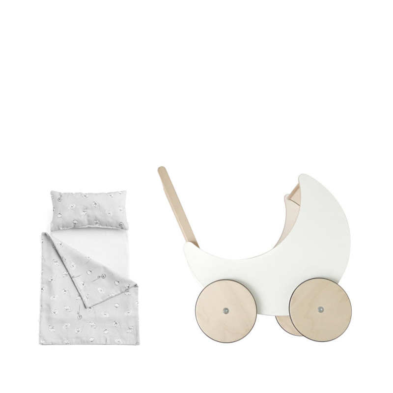 Komplet posteljnine je zasnovan posebej za naš voziček, saj si tudi punčke zaslužijo mehko in udobno posteljnino. Izbirate lahko med petimi različnimi vzorci.