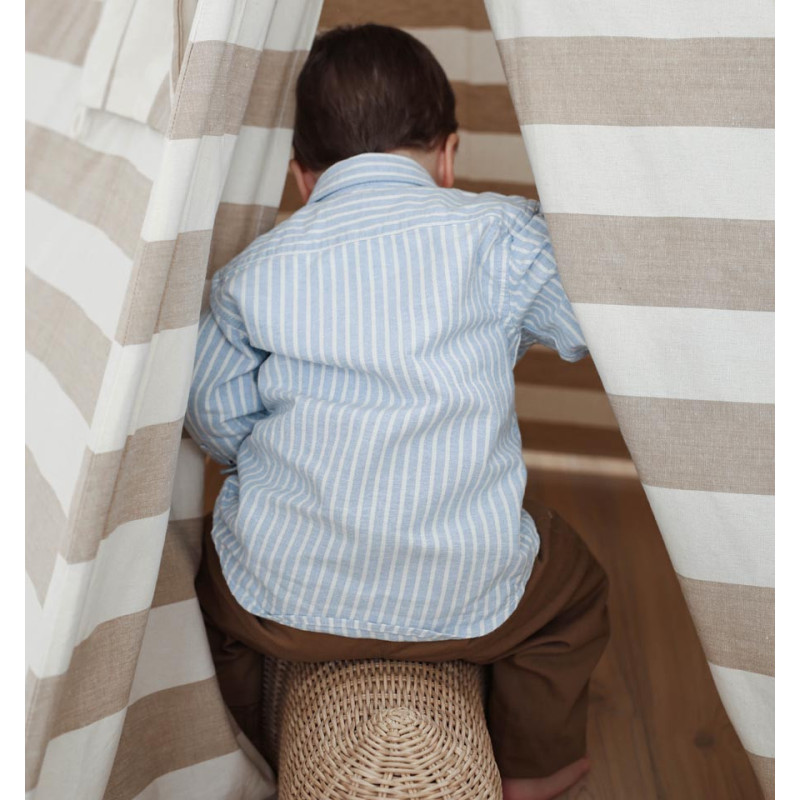 Horizontalne, vertikalne, diagonalne, večbarvne ali enobarvne – črte so drzne, igrive in vedno modne. Prinašajo svetlobo in veselje v vsak kotiček. Ko jih združimo s prostorom, kjer se otroci lahko zabavajo, počutijo varno, se umaknejo v svoj svet, domišljijsko raziskujejo in sanjarijo, nastane pravi hit! Tak kos otrokom ni le za igro, temveč tudi za tiste trenutke, ko si želijo malo zase in svojega skrivnega kotička.