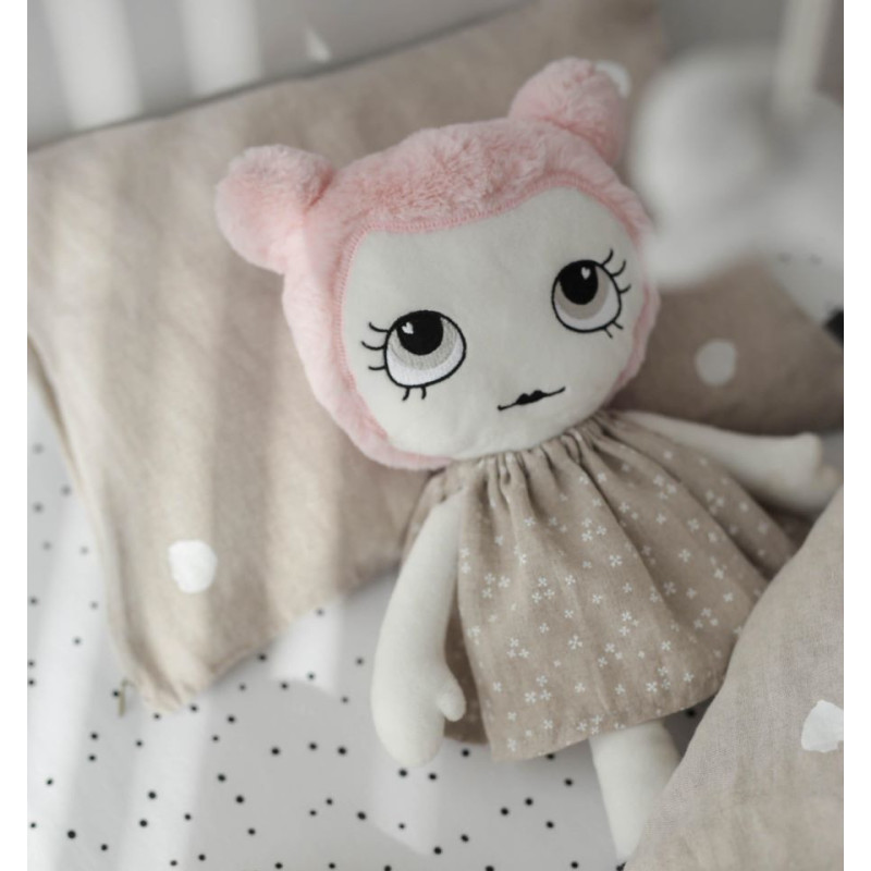 Plišasta igračka Nola, je izjemno mehka in prijetna na dotik, zato je popolna za objemanje, igro ali kot nežna spremljevalka pri spanju. Očara s prikupnim dizajnom, roza ušeski ter črno-belo oblekico, ki ji daje poseben in ljubek videz. Je tudi odlična ideja za darilo ob rojstnih dnevih, praznikih ali kot majhno presenečenje za otroke.