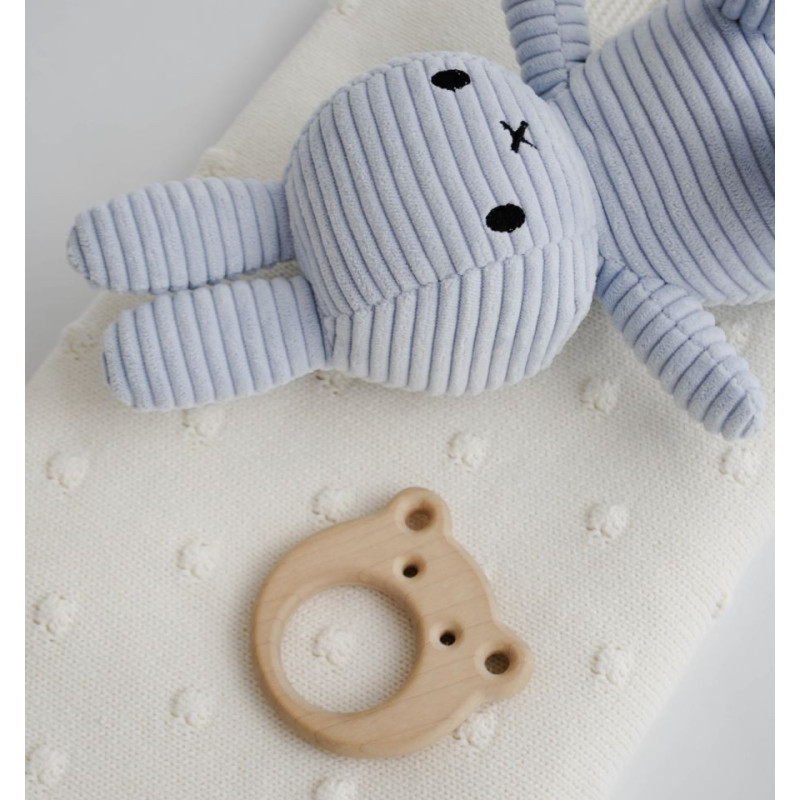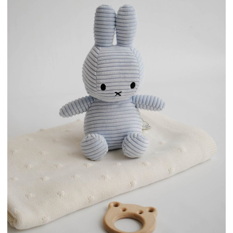 Izdelan iz mehkega, teksturiranega žameta, ta modri zajček Miffy združuje brezčasen dizajn z udobnim občutkom.